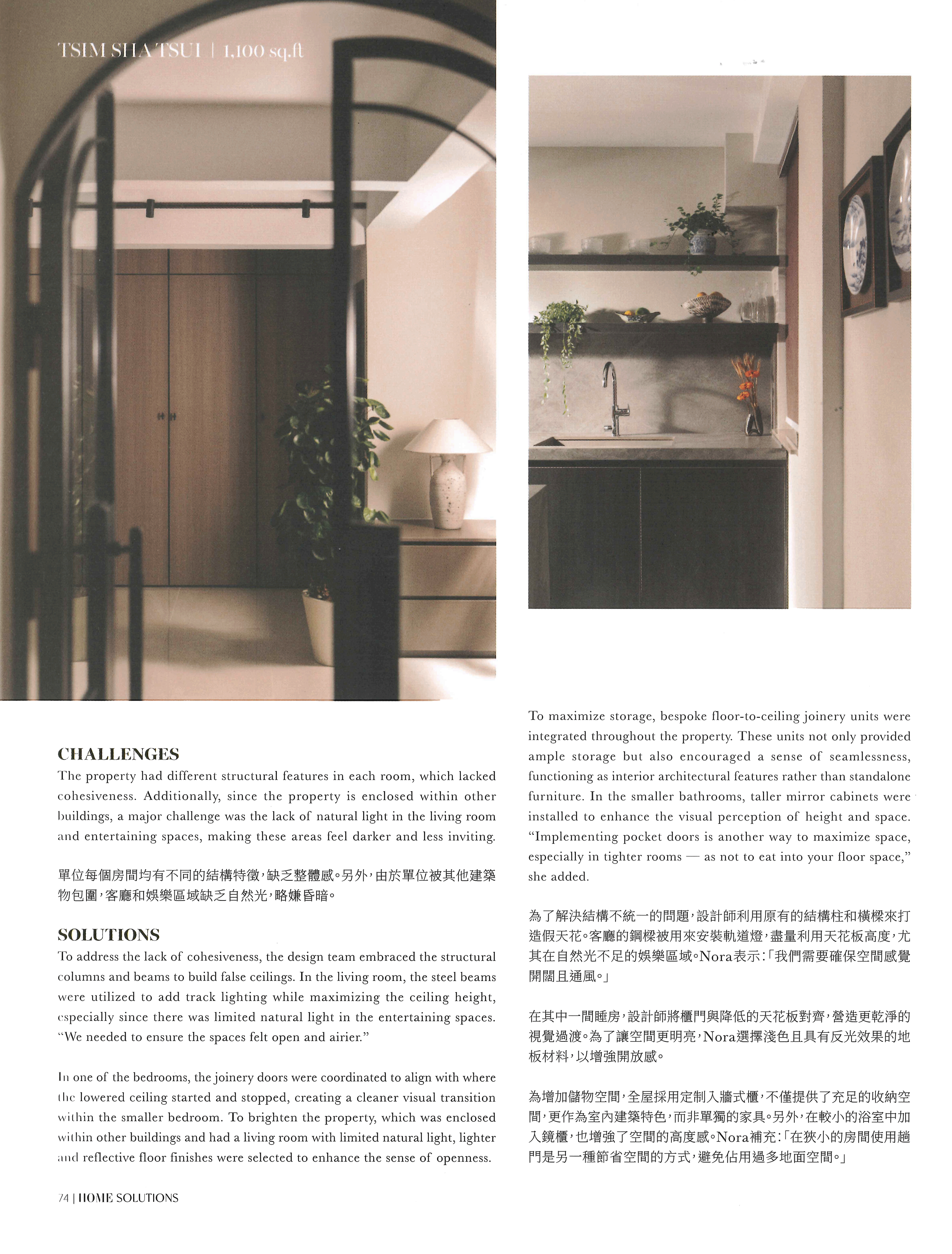 Amongst other architects and interior designers, our City Residence project was selected to be included in Home Solution’s 2025-2026 Print round up, featuring properties located in Hong Kong! We are featured as one of six properties specific to the Kowloon District. We shared solutions to site specific challenges we encountered and general tips when it comes to interior design.